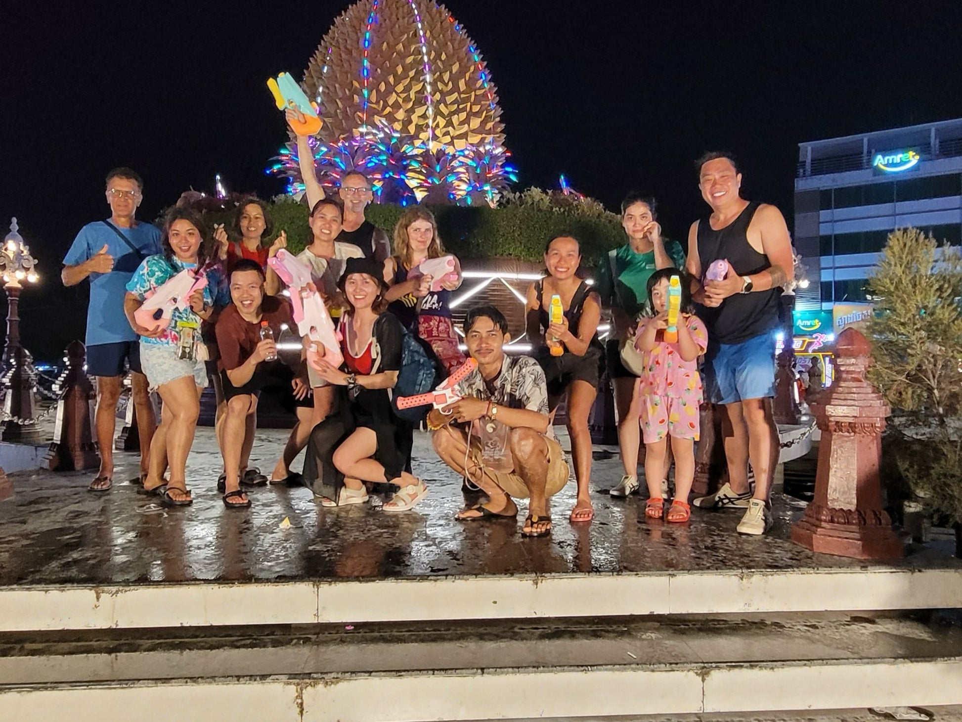 ⏰7PM: Return to the city center for dinner and experience the Songkran water festival at durean roundabout, where people gather on the streets armed with water guns, buckets, and hoses, ready to playfully drench one another. It's a time of laughter, splashing, and friendly water battle as participants roam the streets, dousing each other with water to wash away the past and bring good luck for the year ahead.