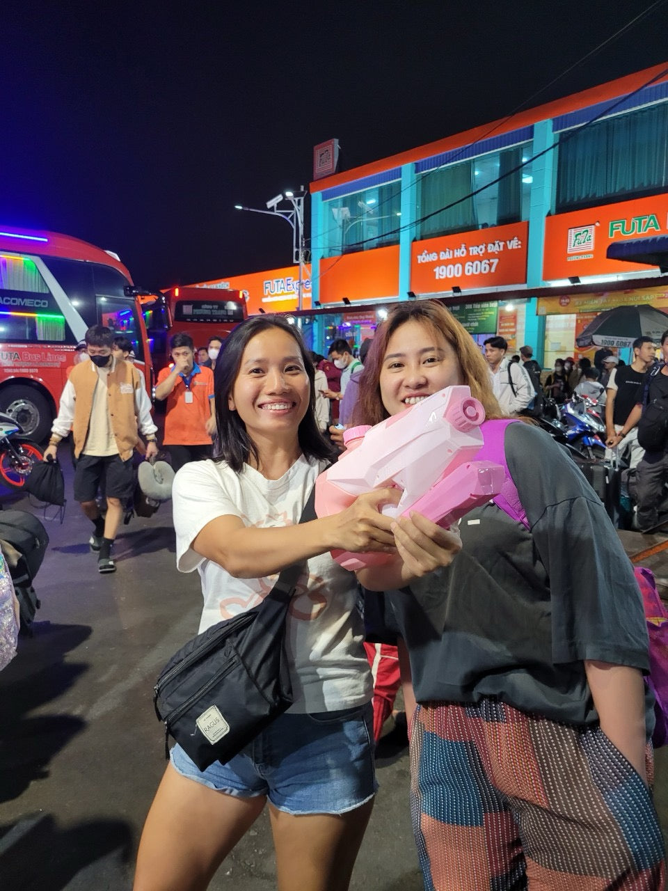 Or 10PM at Futa bus 68 No Trang Long, Binh Thanh District.