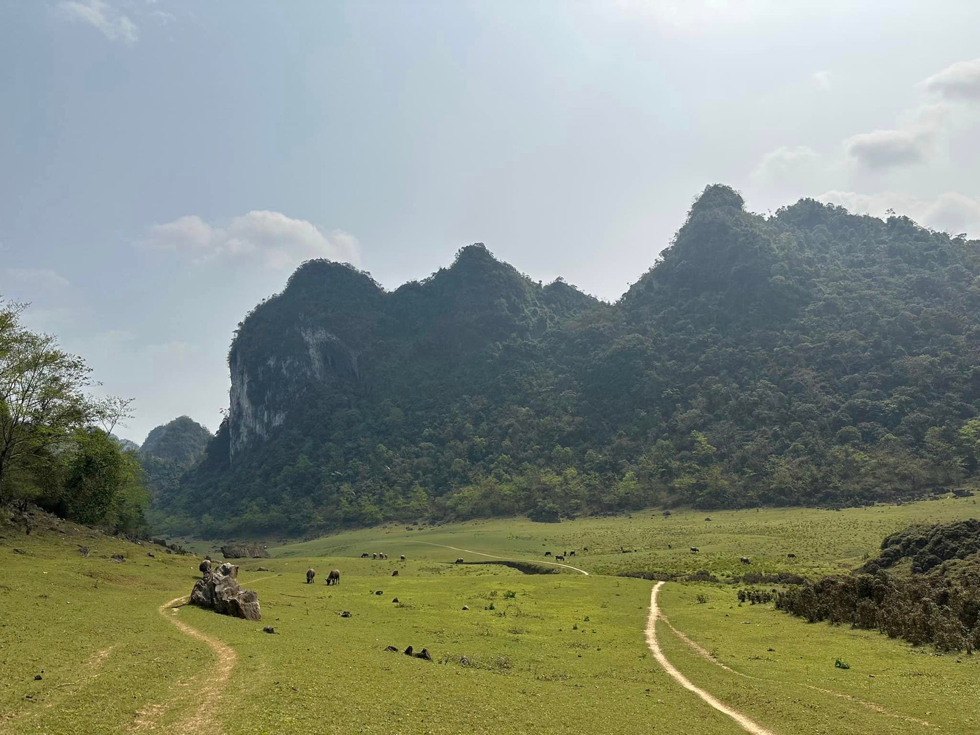 ⏰ 8AM Breakfast and coffee, explore the vibrant Cao Bang city. Enjoy a peaceful lakeside lunch at the picturesque Thang Hen lake. Immerse yourself in local culture, hiking 12km through minority villages, leading you to the majestic Thung Mountain.